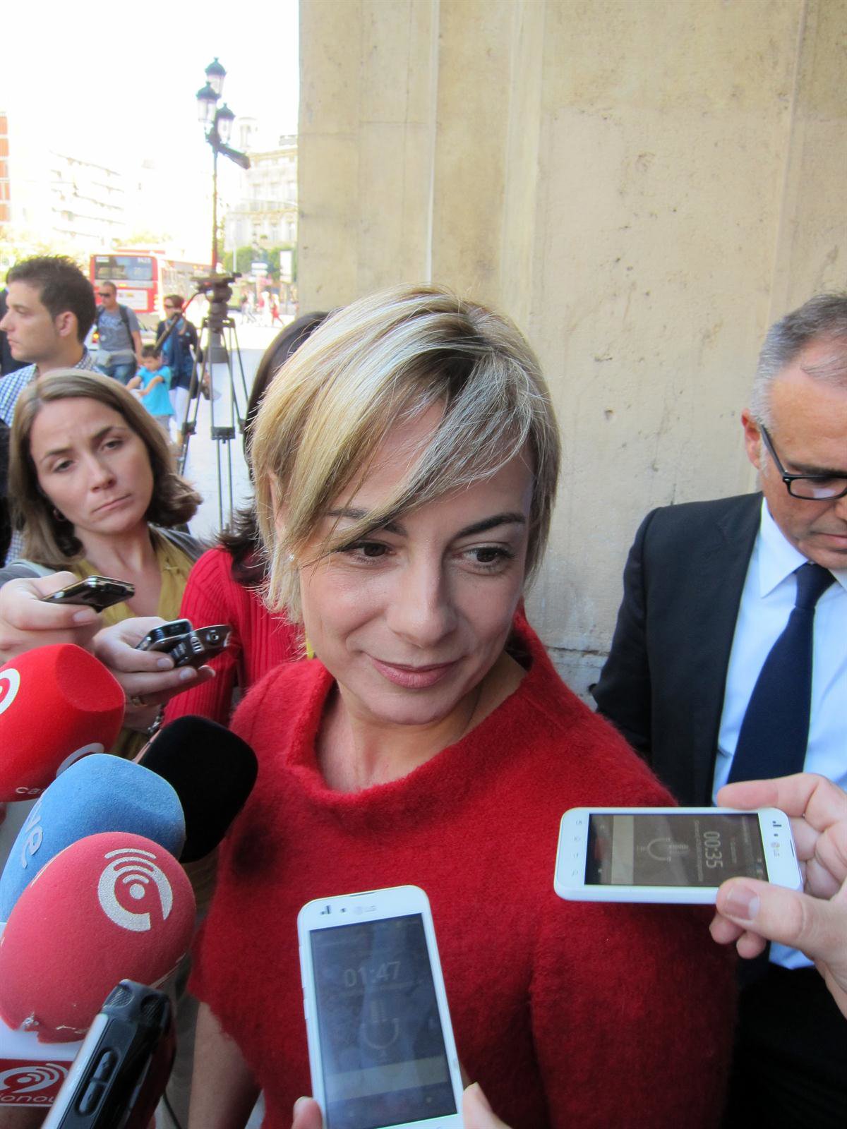 La primera edil ha llegado al tribunal valenciano minutos antes de las 10.00 horas, con un vestido rojo y cargada con documentación. A su llegada ha indicado a los periodistas que estaba "animada" y con ganas de seguir hablando. También ha asegurado que iba a contestar "a todo".