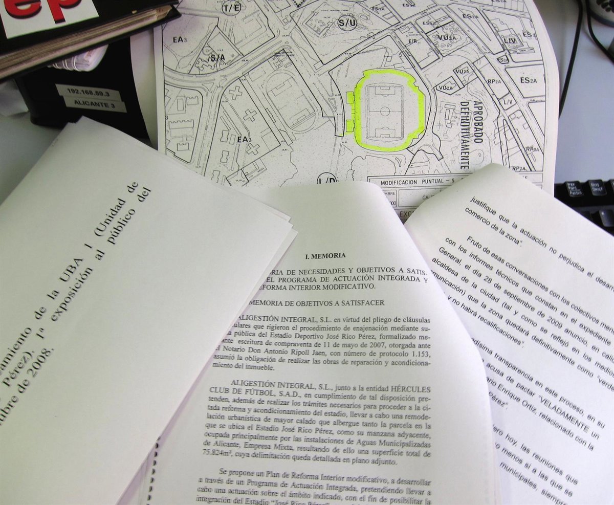 A partir de ahí, hace un repaso por toda la tramitación de la ampliación del Rico Pérez, que finalmente no se llevó a cabo. Recuerda que en abril de 2008 "representantes legales del Hércules C.F. y Aligestión Integral SL plantean al Ayuntamiento de Alicante iniciar los trámites de un PAI que se marcaba como objetivo la creación de un nuevo sector en suelo, con atribución de nuevos usos y aprovechamientos, encaminado a integrar el estadio Rico Pérez en un ámbito transformado, creando un área totalmente recuperada desde el punto de vista urbanístico".