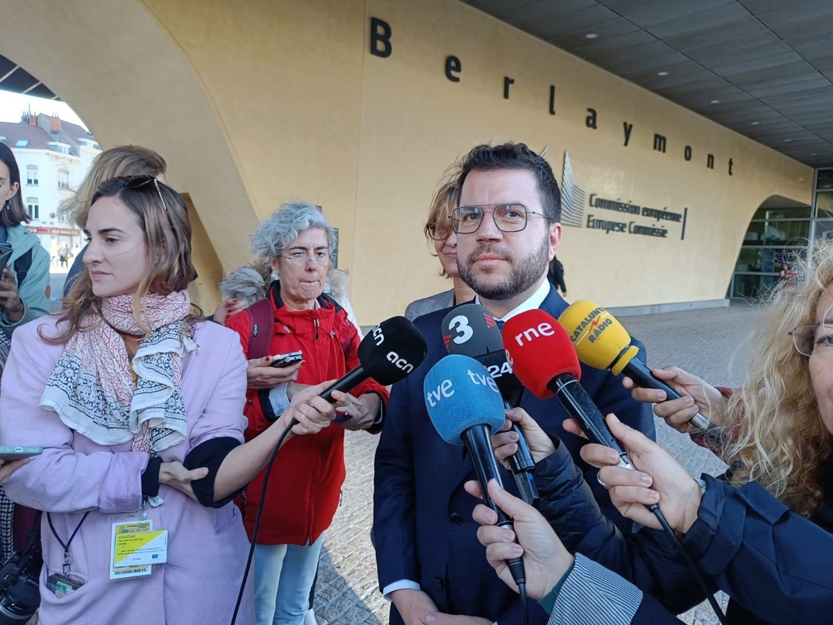 El presidente de la Generalitat, Pere Aragons, en Bruselas tras reunirse con el comisario europeo de Justicia, Didier Reynders. - EUROPA PRESS