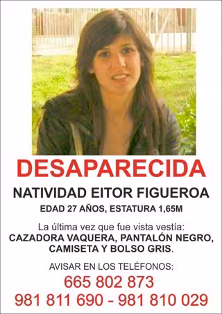 Familiares de Natividad Eitor Figueroa, de 27 años y vecina de la localidad coruñesa de Padrón, han denunciando la desaparición de la joven, de la que desconocen su paradero después de que el jueves saliera de trabajar en la piscina y se dirigiera a pie a su domicilio, situado a unos 200 metros.