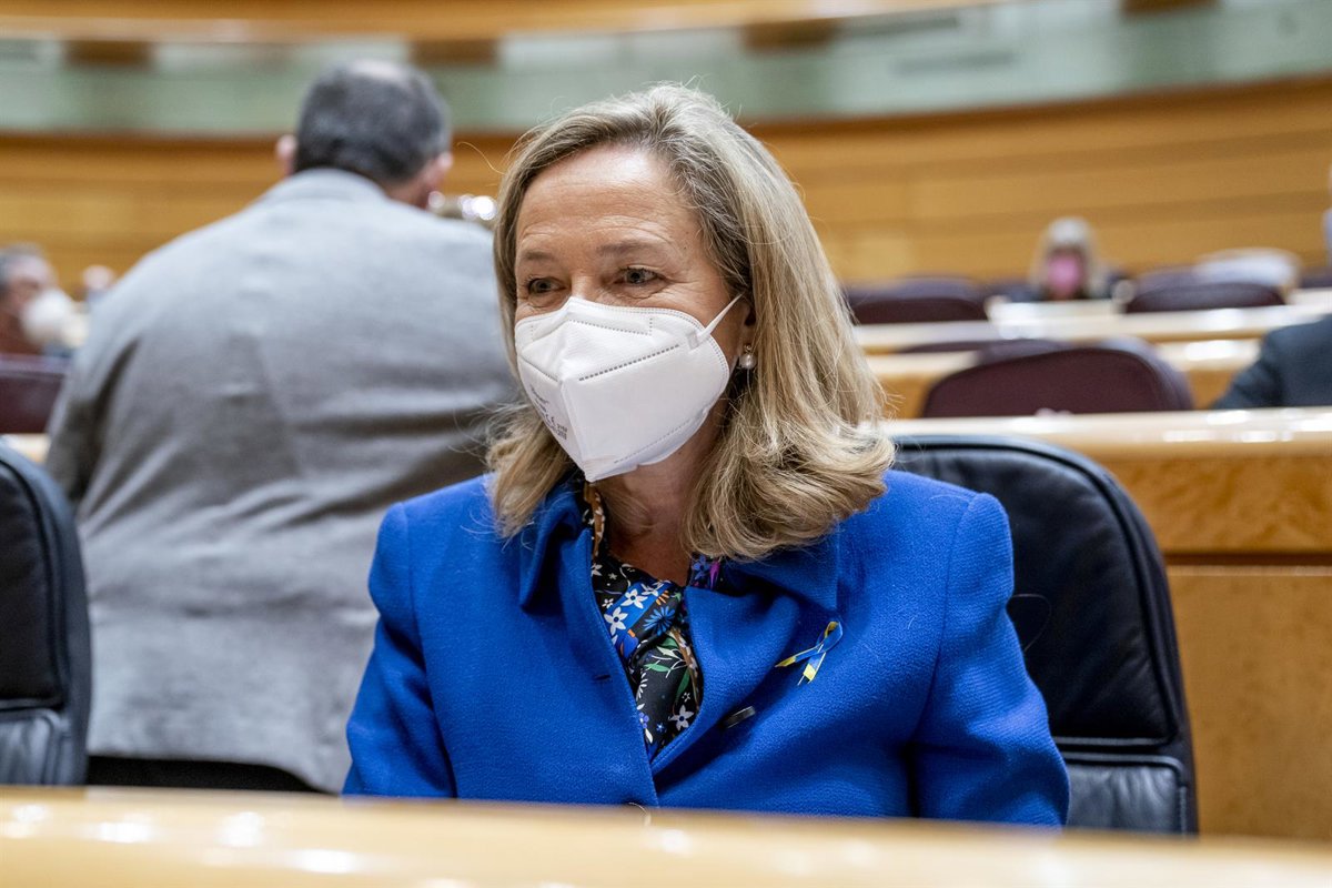 La vicepresidenta primera del Gobierno y ministra de Asuntos Económicos y Transformación Digital, Nadia Calviño, durante una sesión de control al Gobierno en el Senado, a 5 de abril de 2022, en Madrid (España). El PP ha centrado sus iniciativas en su pe - A. Pérez Meca - Europa Press