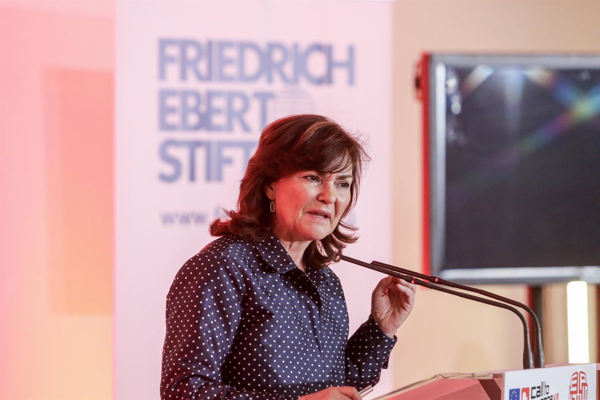 La vicepresidenta del Gobierno, Carmen Calvo, ha asegurado que el PSOE es "el único parapeto posible" para frenar la extrema derecha en Europa a la que considera "lo viejo" de la política "que ahora ha dado la cara".