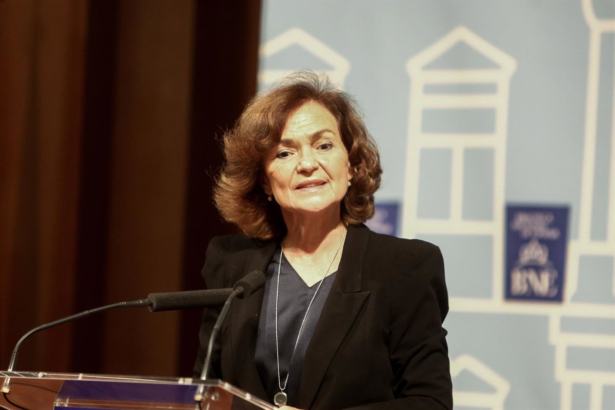 La vicepresidenta primera del Gobierno, Carmen Calvo, ha avisado este viernes al Consejo General del Poder Judicial (CGPJ) de que "ningún poder" del Estado puede invadir la "soberanía parlamentaria" ni cuestionar su derecho a legislar, en este caso, sobre las funciones del órgano de gobierno de los jueces, como plantea la reforma impulsada por el PSOE y Unidas Podemos.
