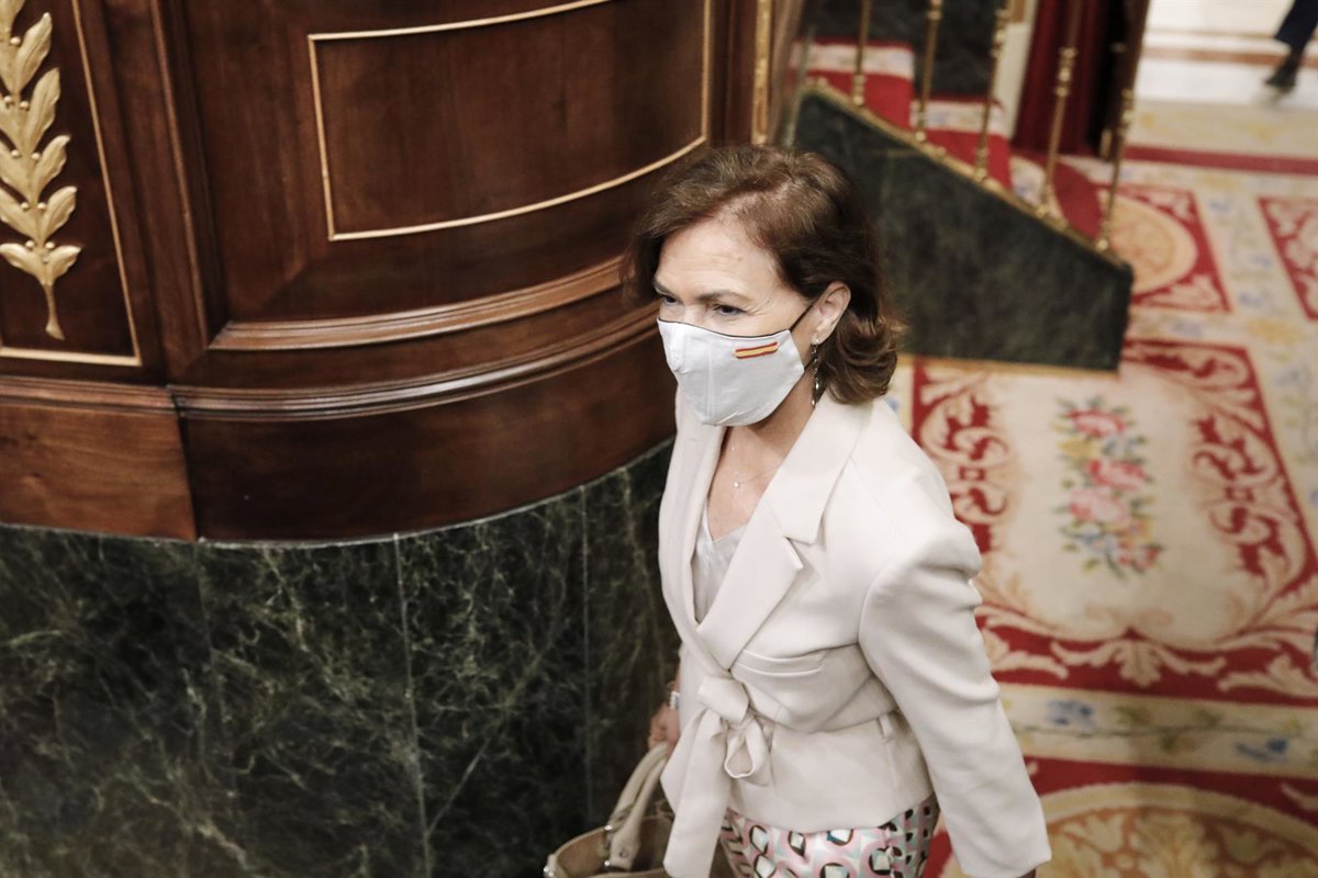 La vicepresidenta primera del Gobierno, Carmen Calvo, a su llegada a la penúltima sesión plenaria en el Congreso de los Diputados antes del paréntesis estival - EUROPA PRESS/J. Hellín. POOL - Europa Press