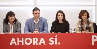 (I-D) La presidenta del PSOE, Cristina Narbona; el presidente del Gobierno en funciones, Pedro Sánchez; la vicesecretaria general y portavoz del Grupo Socialista en el Congreso, Adriana Lastra; y la vicepresidenta del Gobierno en funciones, Carmen Calvo. - Eduardo Parra - Europa Press