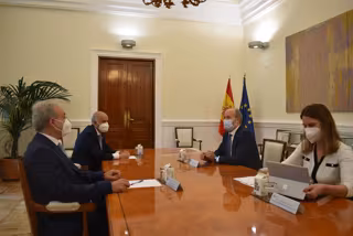Al encuentro, celebrado en la sede del Ministerio, también han asistido la directora general para el Servicio Público de Justicia, Concepción López-Yuste, y el vicepresidente primero del Consejo de Colegios Oficiales de Graduados Sociales, Joaquín Merchán.