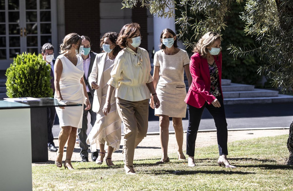 (I-D) La ministra de Trabajo y Economía Social, Yolanda Díaz; la ministra de Hacienda, María Jesús Montero; la vicepresidenta primera, Carmen Calvo; la ministra de Industria, Comercio y Turismo, Reyes Maroto, y la vicepresidenta y ministra de Asuntos Ec - Pool - Archivo