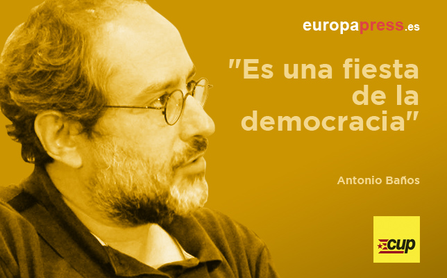 Antonio Baños, candidato por la CUP, ha confesado que siempre había querido decir la típica frase de los políticos en las jornadas electorales: "Es una fiesta de la democracia", y la ha dicho.