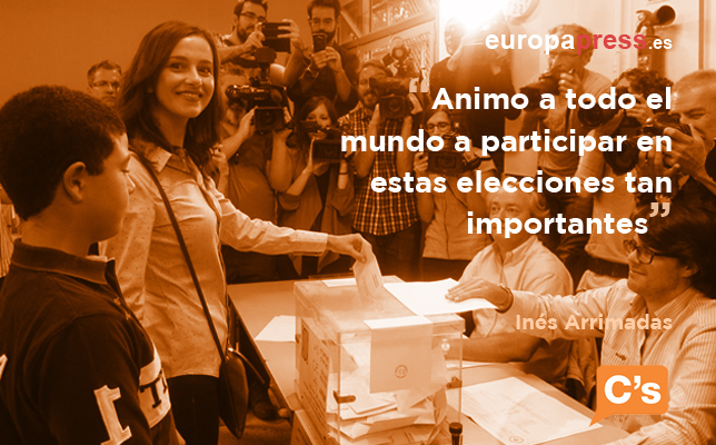 La candidata de Ciudadanos, Inés Arrimadas, ha confiado en que los catalanes vayan "en masa" a votar y el presidente de Ciudadanos, Rivera, también ha llamado a una participación "masiva".