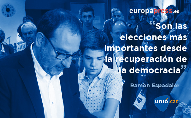 El líder de Unió, Ramón Espadaler, ha anotado que "son las elecciones más importantes desde la recuperación de la democracia".