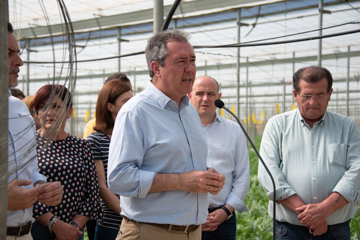 El candidato del PSOE-A a la Junta, Juan Espadas, en una atención a medios en El Ejido (Almería). - PSOE-A