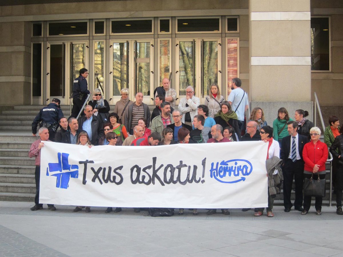El movimiento en defensa de los derechos de los presos de ETA, Herrira, y cargos municipales de Bildu, se han concentrado ante el Palacio de Justicia de Bilbao para pedir la puesta en libertad del preso basauritarra Txus Martín, que sufre "una enfermedad grave e incurable".