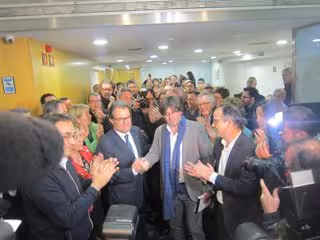 Se han dirigido a la sede después de la comparecencia que Mas ha hecho en la Generalitat catalana, donde ha anunciado su renuncia y que cede el testigo a Puigdemont, dirigente forjado en el terreno municipalista, quien también ha agradecido a Mas su liderazgo y perseverancia en favor de un proyecto "bien orientado y sólido".