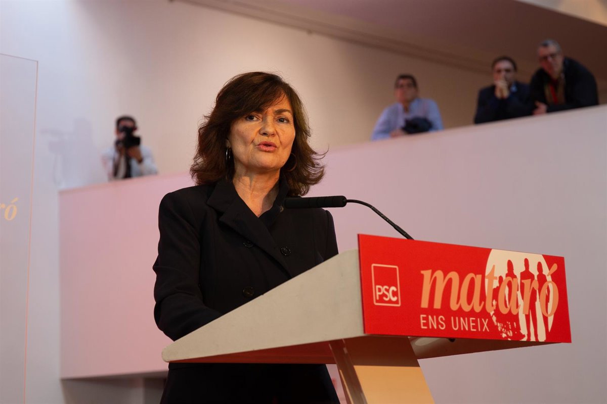 Carmen Calvo también ha precisado que si se rechaza otro tipo de "injerencias en términos drásticos" tendrán que rechazar también "otras menos drásticas que alteren lo único importante en democracia y es que Venezuela hable con libertad, seguridad jurídica y con garantías suficientes".