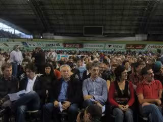 El velódromo de Anoeta, que tiene un aforo de 12.000 personas, estaba casi al completo, y el mitin ha contado con la presencia del diputado general de Gipúzcoa, Martin Garitano, el alcalde de san Sebastián, Juan Karlos Izagirre, y dirigentes históricos de la izquierda abertzale, como Rufi Etxeberria, Pernando Barrena, Joseba Permach, Tasio Erkizia y Niko Moreno.