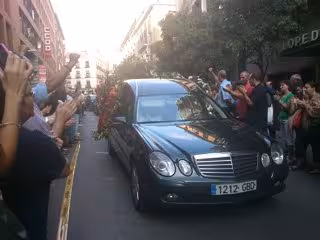 Después, los restos mortales de Carrillo han encabezado un breve cortejo fúnebre que ha recorrido parte del Paseo del Prado hasta la Plaza de Cibeles, con el tráfico cortado y entre los aplausos de docenas de personas. A partir de ahí, la comitiva ha seguido su camino hacia el Cementerio de la Almudena, donde el cuerpo ha sido incinerado.