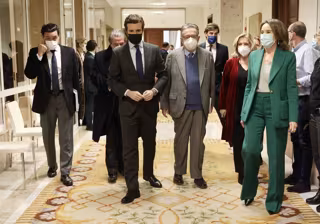 Casado ha afirmado que "el compromiso del centroizquierda con la forma en que se hizo la transición y el compromiso del centroderecha con el contenido de la Constitución" resumen, a su juicio, "el éxito colectivo" del proceso democrático en España. Sin embargo, ha señalado que ahora tienen "una amplia parte de la izquierda que para rechazar el contenido pretende poner en cuestión el método mediante el cual se alcanzó, faltando a la verdad histórica".
