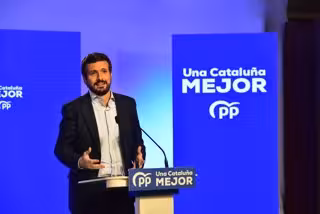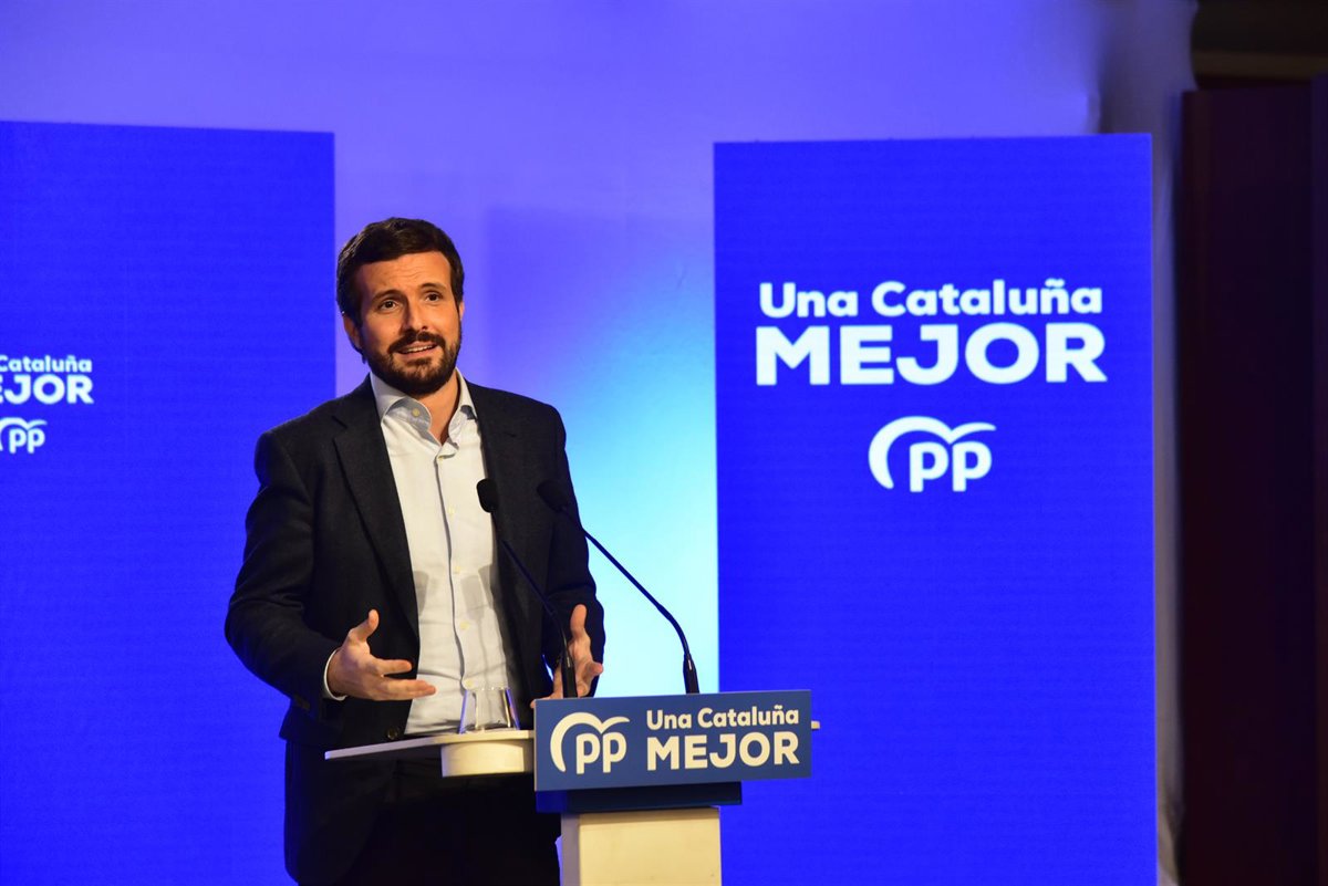 El líder del PP, Pablo Casado interviene durante el inicio de la campaña electoral para los comicios del 14 de febrero, en el Hotel Grand Marina, en Barcelona, Catalunya (España), a 28 de enero de 2021. La campaña del PPC, que se centra en Alejandro Fer - David Oller - Europa Press