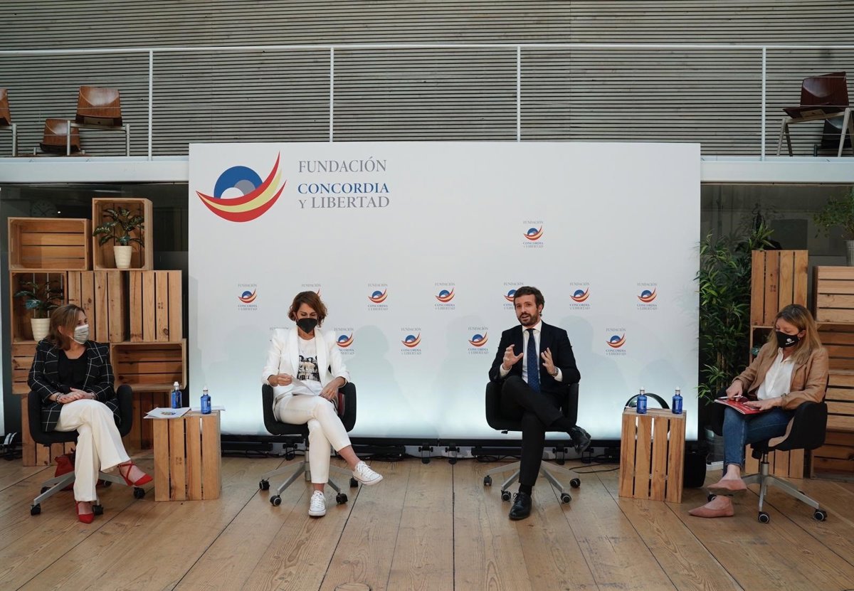 El presidente del PP, Pablo Casado, participa en unas jornadas organizadas por la Fundación Concordia y Libertad sobre 'Reto Demográfico'. En Madrid, a 17 de mayo de 2021. - DAVID MUDARRA (PP)
