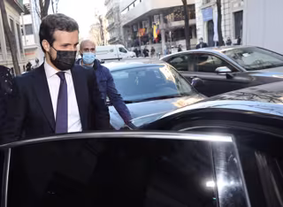 El líder del PP, Pablo Casado, a su salida de una entrevista radiofónica, a 18 de febrero - Eduardo Parra - Europa Press
