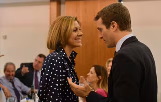 "Soraya Sáenz de Santamaría tiene todo mi respeto y haremos que se sume a esta integración de las cinco candidaturas que ya hemos sido capaces de entendernos", ha asegurado Casado en un desayuno informativo organizado por el Fórum Europa, en en el que le ha arropado públicamente la todavía secretaria general del PP y exministra de Defensa, María Dolores de Cospedal, una persona que considera "imprescindible" para el futuro del partido, igual que a Alberto Núñez Feijóo. A ambos ha dicho que quiere tenerles "muy cerca".