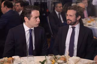 Archivo - El secretario general del Partido Popular, Teodoro García Egea (i) y el presidente del PP, Pablo Casado (d), participan en un desayuno del Fórum Europa, organizado por Nueva Economía Fórum, en el Hotel Mandarin Oriental Ritz, a 7 de octubre de - Eduardo Parra - Europa Press - Archivo
