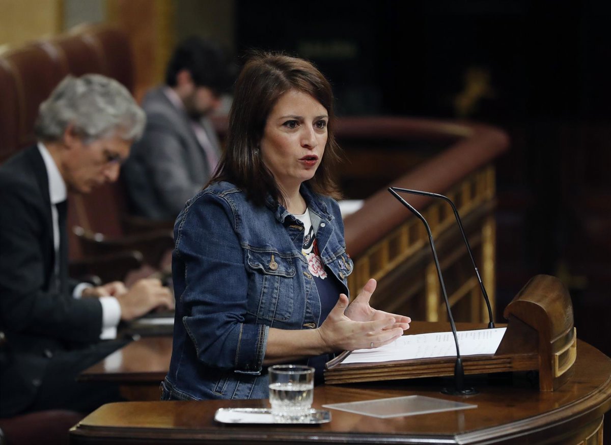 La portavoz parlamentaria del grupo socialista, Adriana Lastra, interviene desde la tribuna durante el pleno del Congreso este miércoles sobre la prórroga del estado de alarma solicitada por el Gobierno. En Madrid (España), a 6 de mayo de 2020. - Pool