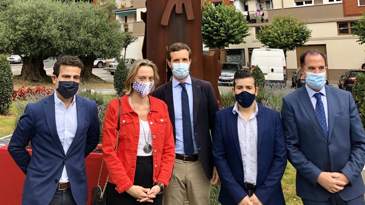 Pablo Casado participa en una ofrenda floral al concejal assinado por ETA Miguel Ángel Blanco junto a otros dirigentes del partido en Euskadi - PP