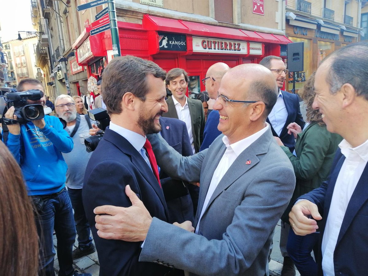 Pablo Casado saluda en Pamplona a Alberto Catalán, candidato de Navarra Suma al Senado - EUROPA PRESS