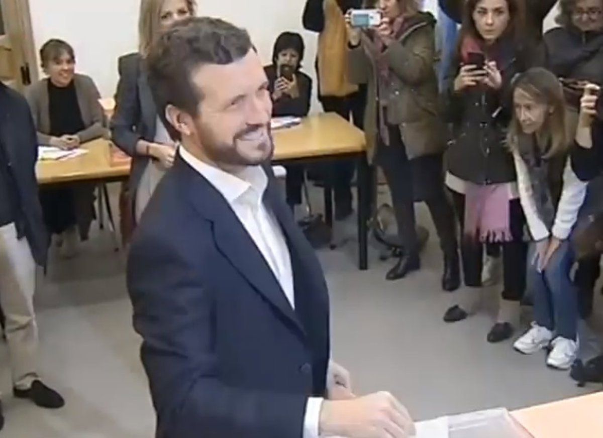 El presidente del PP, Pablo Casado, votando en las elecciones generales del 10 de noviembre - EUROPA PRESS