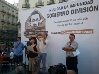 El acto de protesta, que ha arrancado a las ocho de la tarde en la Puerta del Sol, ha sido convocado por las cinco organizaciones que presentaron la denominada 'querella Bárcenas' --Izquierda Unida, Ecologistas en Acción, Asociación Libre de Abogados, Los Verdes y Justicia y Sociedad-- y ha contado con el apoyo de diversos colectivos sociales, entre ellos varias asambleas del movimiento 15M.