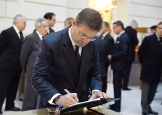Catalá firma en el libro de condolencias en la capilla ardiente de Maza - POOL