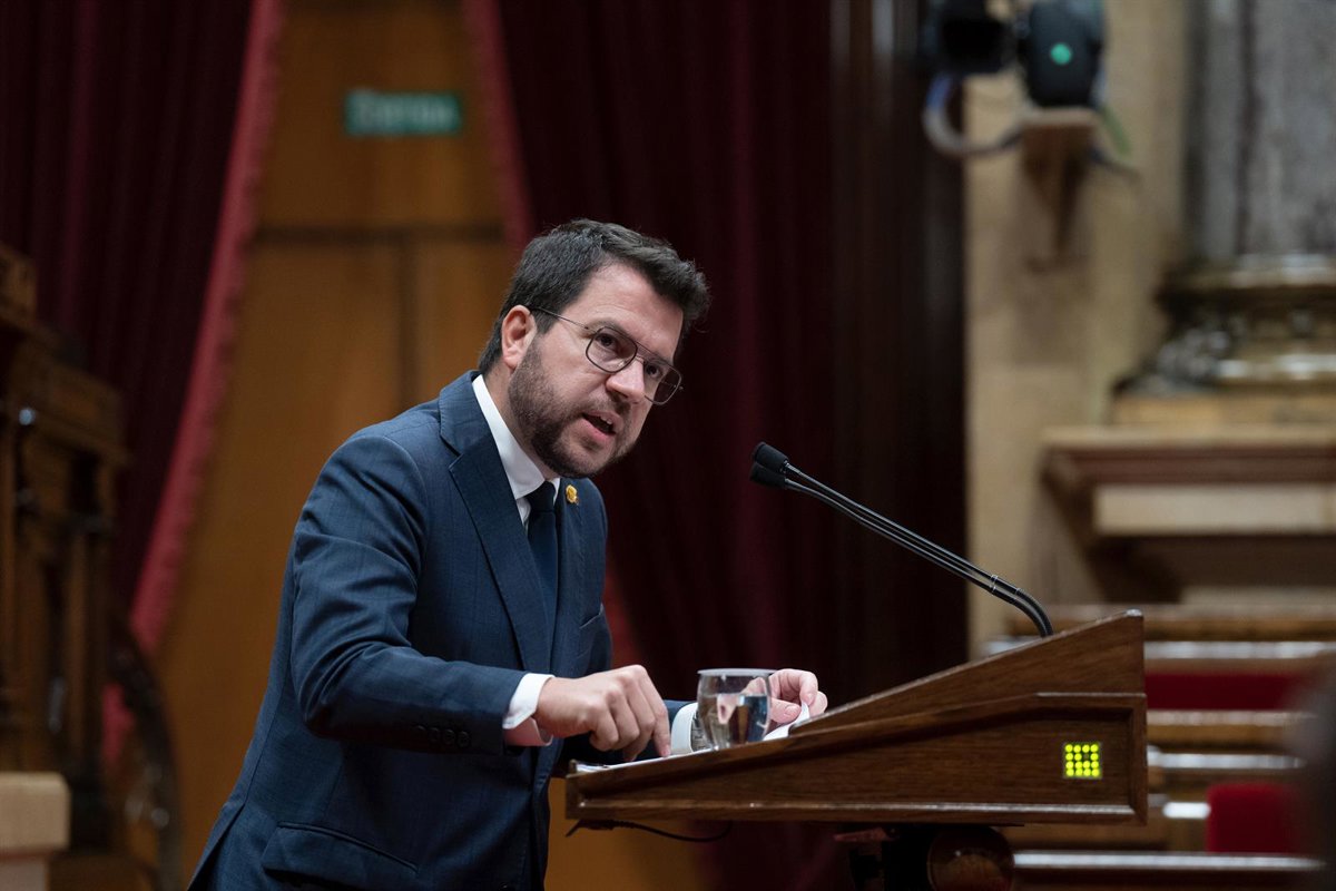 El presidente de la Generalitat de Catalunya, Pere Aragons, interviene durante el tercer Debate de Política General de la legislatura, en el Parlament de Catalunya, a 27 de septiembre de 2023, en Barcelona, Catalunya (España). El debate arrancó ayer, 2 - David Zorrakino - Europa Press