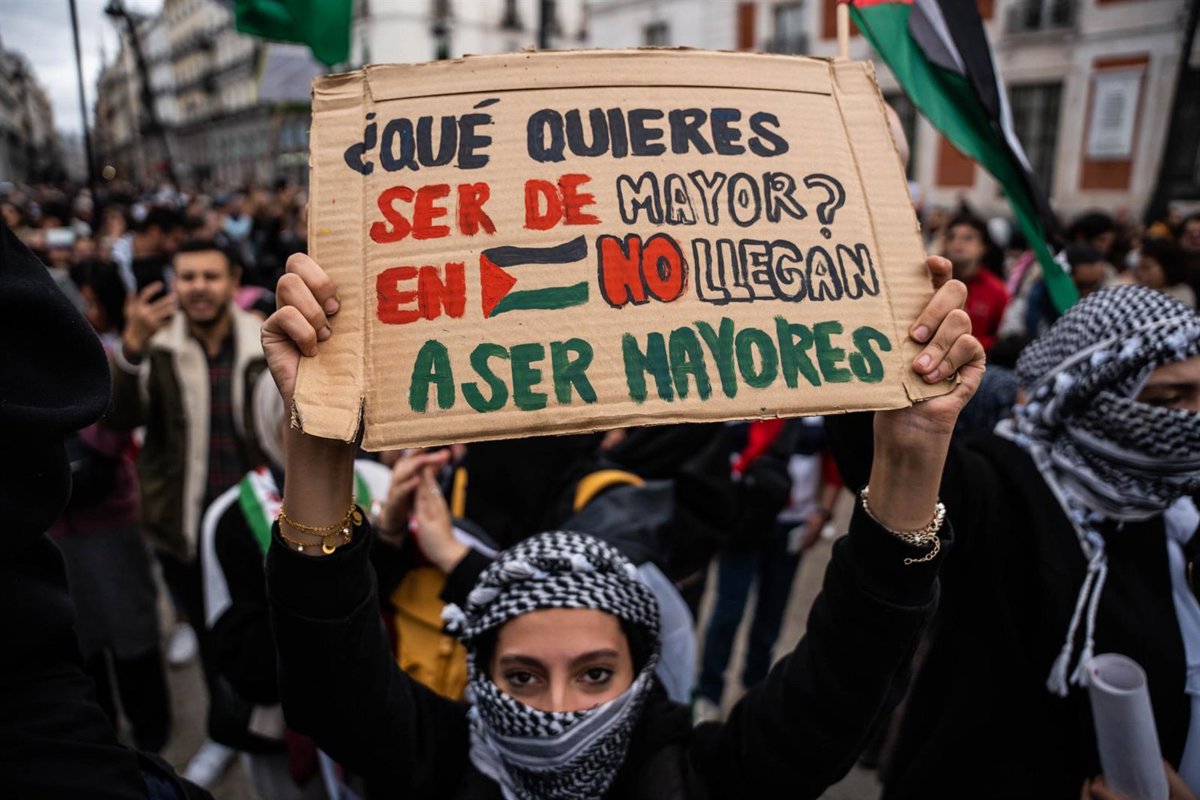 Archivo - Una mujer con un cartel durante una manifestación en apoyo a Palestina, a 29 de octubre de 2023, en Madrid (España). - Matias Chiofalo - Europa Press - Archivo