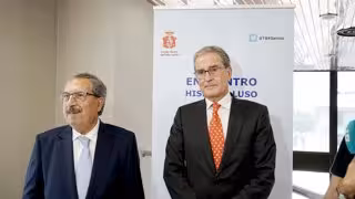 El presidente del Consejo General del Poder Judicial (CGPJ), p.s., el vocal Rafael Mozo (i) y el presidente del Tribunal Superior de Xustiza de Galicia (TSXG), José María Gómez y Díaz-Castroverde (d), antes de inaugurar unas jornadas en Vigo. - Javier Vázquez - Europa Press