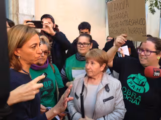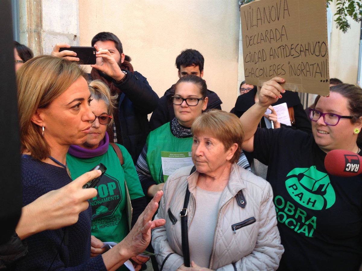 Los activistas la han recibido este miércoles con gritos de "Culpable" al entrar a un acto electoral en Vilanova i la Geltrú, pero la exministra de Vivienda no se ha acercado a ellos y ha esperado a la salida para escuchar sus peticiones.