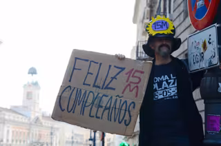 MADRID, 15 May. (EUROPA PRESS) - Cientos de personas se han manifestado este domingo desde la Plaza de Cibeles de Madrid hasta la Puerta del Sol para conmemorar el quinto aniversario del 15M, un movimiento que surgió el 15 de mayo de 2011 con una marcha de similar recorrido y que culminó con la instalación de la acampada de Sol, que tuvo réplica en decenas de ciudades españolas y fue el germen de iniciativas similares en todo el mundo como la protesta 'Occupy Wall Street' en Nueva York (EEUU). Bajo el lema "La lucha sin fronteras es el único camino", la manifestación de Madrid se ha sumado a la convocatoria internacional 'Global Debout' de concentraciones en varias ciudades de todo el planeta, que se ha inspirado en el movimiento 'Nuit debout' que surgió a finales de marzo en la Plaza de la República de París y ha elegido la fecha del aniversario del 15M madrileño. A las 18 horas, la marcha ha comenzado en la Plaza de Cibeles recuperando consignas que se hicieron populares en Sol hace cinco años, como el "No nos representan". Los manifestantes han portado soles (símbolo de la acampada de la Puerta del Sol) pero también banderas republicanas, palestinas y distintivos de diferentes movimientos sociales. "La lucha sigue, cueste lo que cueste", se ha gritado también mientras la marcha avanzaba por la calle Alcalá en dirección a la Puerta del Sol. En el día de San Isidro, patrón de la ciudad de Madrid, a la convocatoria han acudido personas de todas las edades y ha estado amenizada con la actuación de la 'Solfónica', un grupo de música coral que surgió del 15M y ha rubricado desde entonces decenas de manifestaciones en Madrid. Sobre las 19 horas, la manifestación ha alcanzado la Puerta del Sol, epicentro del movimiento de los 'indignados'. Durante unos minutos, las personas que han llegado a la plaza del 'kilómetro cero' han compartido espacio con vehículos y autobuses, aunque después el tráfico ha sido cortado por la afluencia de asistentes. Sin embargo, la concentración no ha sido tan multitudinaria como las que se sucedieron tras el 15 de mayo de 2011. "El 15 de mayo de 2016 celebramos mucho más que un aniversario, celebramos que seguimos en pie", se ha proclamado en la lectura de un comunicado, donde se ha subrayado que el 15M "no tiene líderes" y que es "un movimiento global" con implantación en países de todo el mundo. "Hemos conseguido sembrar solidaridad y apoyo mutuo para lograr muchas cosas más", han añadido los convocantes de la marcha, a la que se han sumado los miembros del Sindicato Andaluz de los Trabajadores (SAT) que este domingo habían llegado a Madrid para reclamar la libertad de Andrés Bódalo, concejal de Jaén condenado a prisión por agredir en 2012 al teniente de alcalde socialista de la localidad de Jódar. Hace cinco años, en la Puerta del Sol colgaron carteles y consignas en los habituales andamios que cubren edificios de la plaza. Ahora, esos andamios portan grandes anuncios publicitarios, y en el espacio que ocupaba la acampada se levantaba este domingo un gran escenario preparado para el programa de televisión 'El objetivo' de La Sexta. Su presentadora, Ana Pastor, ha sido increpada por algunos asistentes, que han gritado "Fuera, fuera" dirigiéndose a la periodista. A pesar de los cambios en la Puerta del Sol durante este lustro, algunos rincones han recordado al escenario donde surgió el 15M. Por ejemplo 'la ballena', el acceso acristalado al Cercanías de Sol, ha vuelto a quedar tapizada de carteles de los manifestantes, con frases como "El miedo nunca conquistó derechos". Entre la amalgama de asistentes, se ha podido ver a representantes políticos como José Manuel López, el portavoz de Podemos en la Asamblea de Madrid. La manifestación se ha producido sin incidentes, y al final de la tarde se contaban por cientos las personas que permanecían en la Puerta del Sol. Algunas de ellas participando en una asamblea, como hace cinco años.