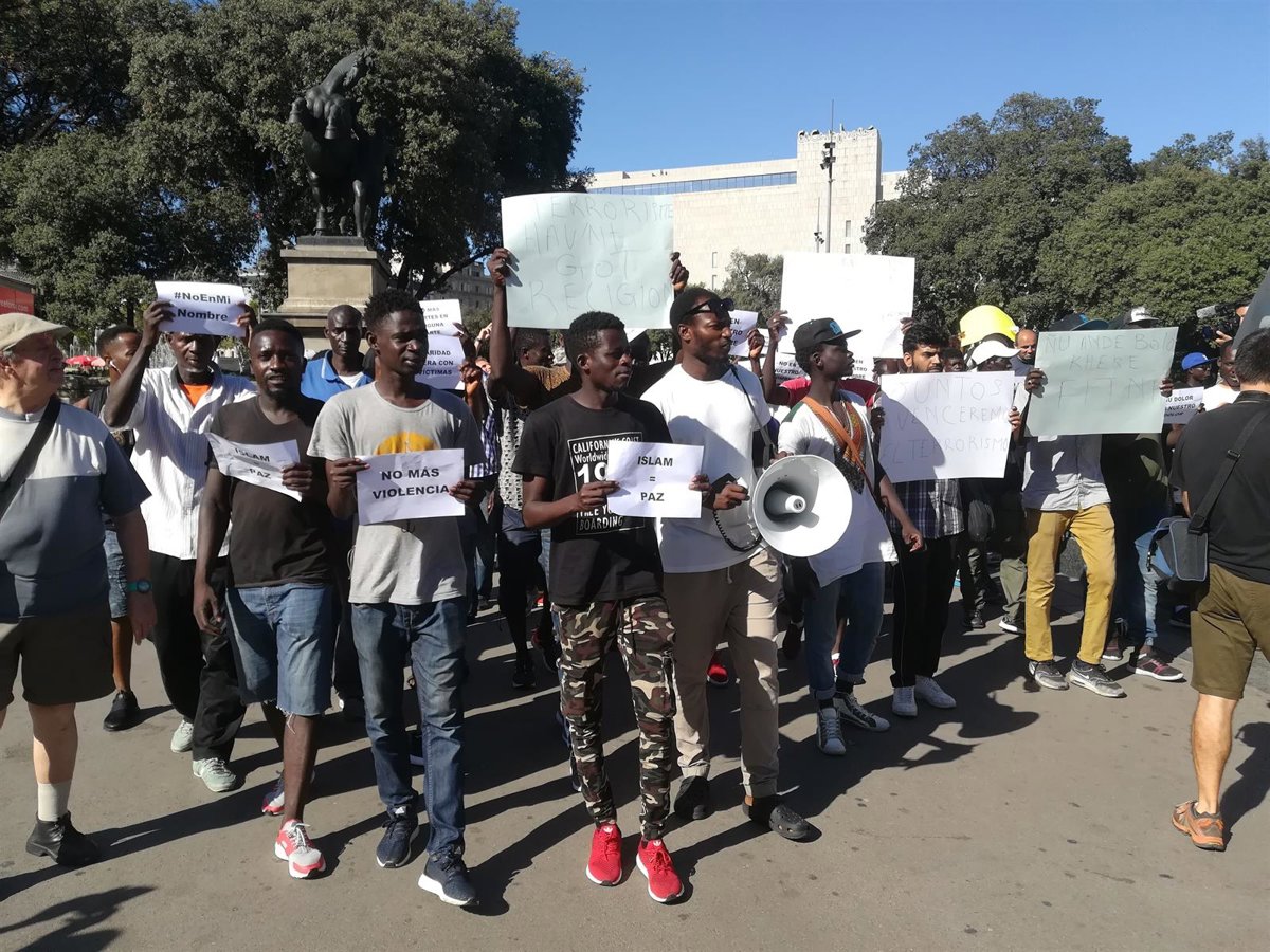 Convocados por el Sindicato Popular de Vendedores Ambulantes de Barcelona, que llamó a la participación a través de las redes sociales, los manifestantes se han congregado en el centro de la plaza bajo el mensaje de 'solidaridad mantera con las víctima'.