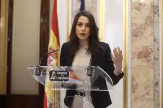La portavoz de Ciudadanos en el Congreso de los Diputados, Inés Arrimadas, en rueda de prensa tras la segunda votación para la investidura del candidato socialista a la Presidencia del Gobierno, la cual ha resultado fallida. - Eduardo Parra - Europa Press