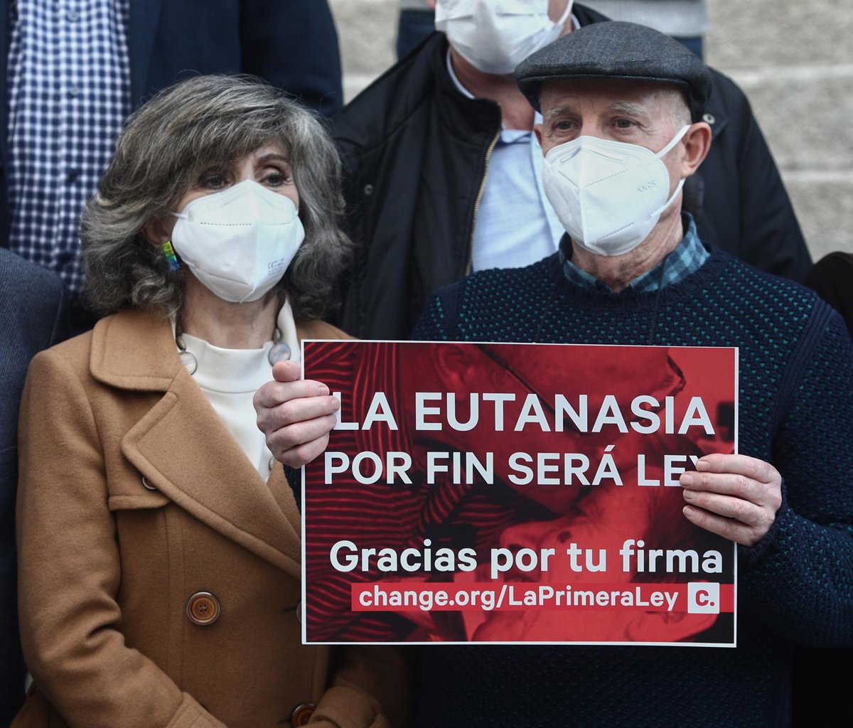 Archivo - Ángel Hernández, que ayudó a morir a su mujer enferma, María José Carrasco, junto a la secretaria de Sanidad de la Ejecutiva Federal del PSOE, María Luisa Carcedo. - Eduardo Parra - Europa Press - Archivo