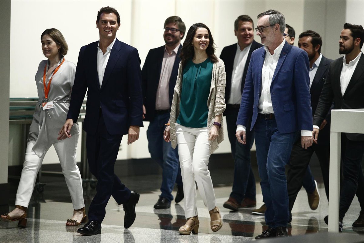 El presidente de Ciudadanos, Albert Rivera; la portavoz del partido en el Congreso de los Diputados y el secretario general de Cs, José Manuel Villegas, junto a otros miembros de la formación naranja - Eduardo Parra - Europa Press