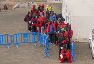 Archivo - Varios migrantes esperan para ser trasladados al puerto de La Estaca - Antonio Sempere - Europa Press - Archivo
