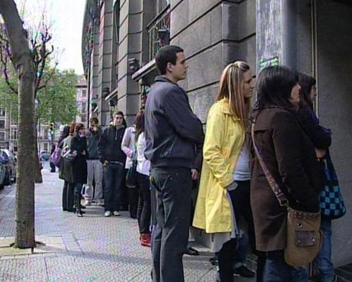 Los aficionados del Athletic Club formaron largas colas desde primera hora de la mañana ante los cajeros multiservicio de la BBK para adquirir una de las 40.000 entradas para presenciar en San Mamés la final de Copa del 13 de mayo entre el Athletic y el Barcelona a través de las pantallas gigantes que la Caja instalará en el estadio rojiblanco.