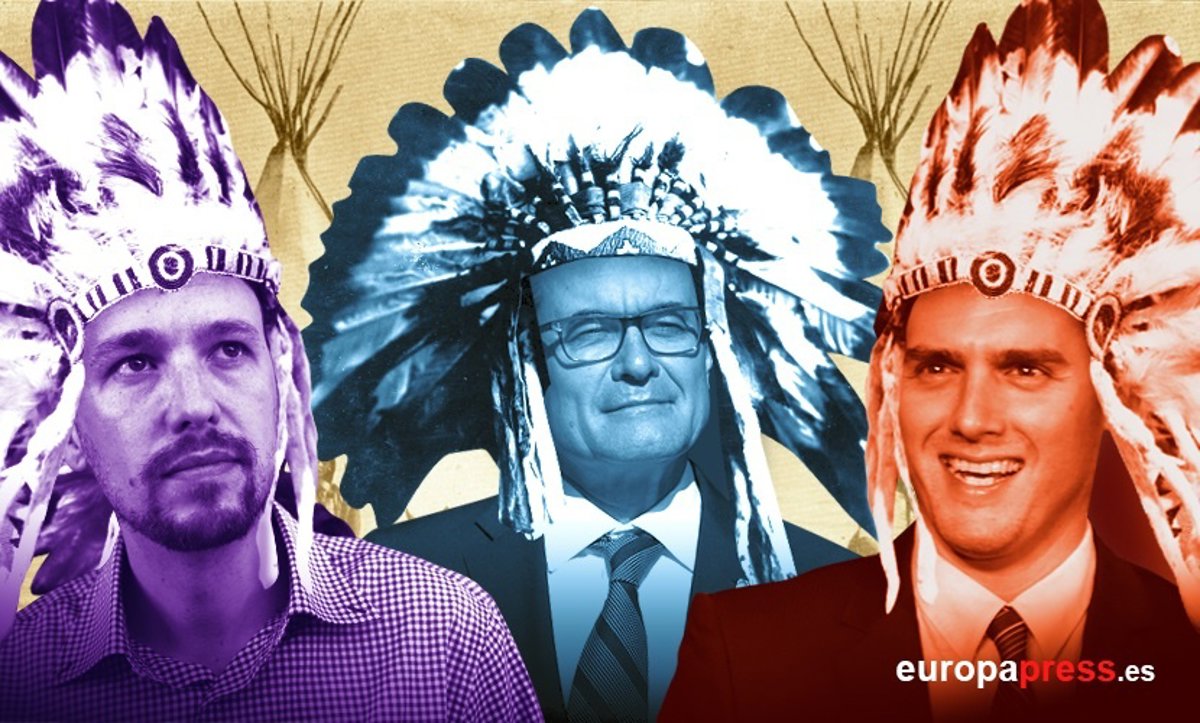 Iglesias comenzó un mitin en Barcelona el pasado lunes imitando la forma de hablar de los indios americanos (según la versión tópica de los 'western'), tal como había hecho Mas durante un acto electoral el pasado domingo en Tortosa (Tarragona). El presidente catalán dijo: "Grandes jefes PP, PSOE, Podemos, venir gran reserva catalana que indígenas votar. Indígenas decir jefes que gran corte de manga".