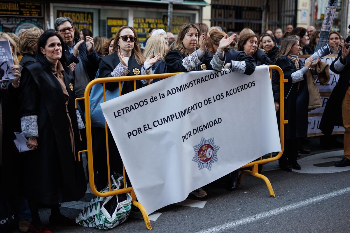 Los Letrados de la Administración de Justicia en la manifestación de ayer durante la reunión con el Ministerio de Justicia. - Alejandro Martínez Vélez - Europa Press