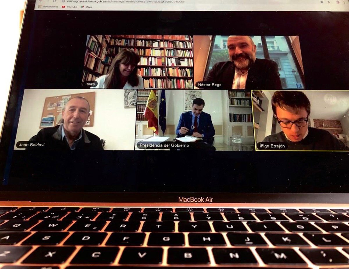 Videoconferencia de Pedro Sánchez con los portavoces del Grupo Plural del Congreso: Joan Baldoví (Compromís), Íñigo Errejón, (Más País), Laura Borrs (Junts) y Néstor Rego (BNG) - Compromís