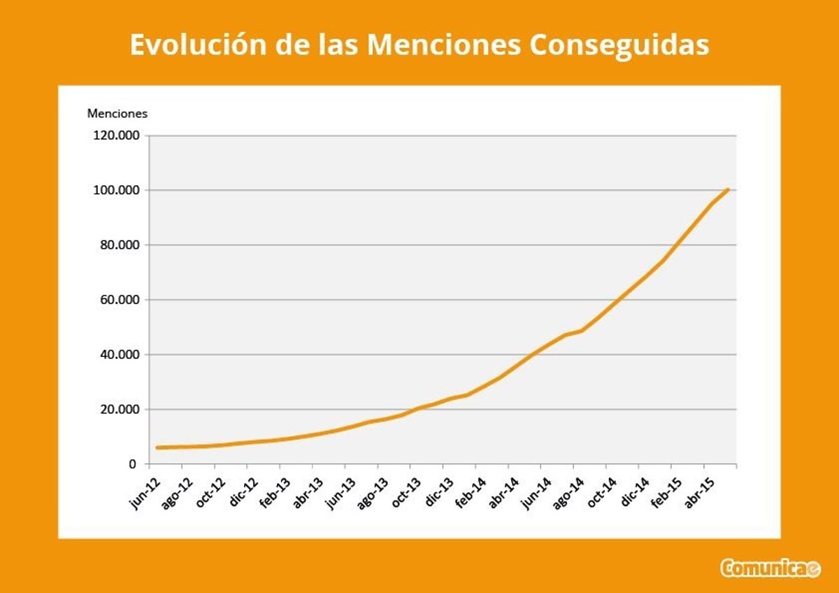 Las menciones no han parado de crecer año tras año. Si en 2012 el total de menciones fue de 2.431, en 2013 el número se situó en las 15.855. Si nos fijamos en 2014, obtuvieron 44.764 menciones, muchas más de las conseguidas en los dos anteriores años juntos. Y en lo que llevan de 2015 la cifra ya se sitúa en las 31.550. Y es que las cifras hablan por sí solas. La consolidación de Comunicae en el mercado español es un hecho.