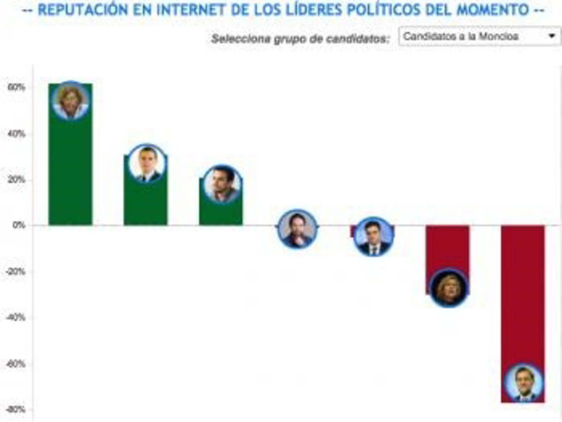Tras calcular la media de los resultados en las distintas plataformas analizadas, en base a lo que se conoce como "sentiment", se concluyó que el candidato a la presidencia del Gobierno con mejor reputación online es, actualmente, Albert Rivera. El presidente de Ciudadanos parece ser, por el momento, el político con competencias a nivel nacional que causa más simpatía entre los usuarios de internet y que menor número de comentarios negativos genera. A éste le siguen Garzón e Iglesias, lo que indica que del conjunto de líderes que aspiran a la Moncloa, son los más jóvenes los que mejor reputación tienen en internet.