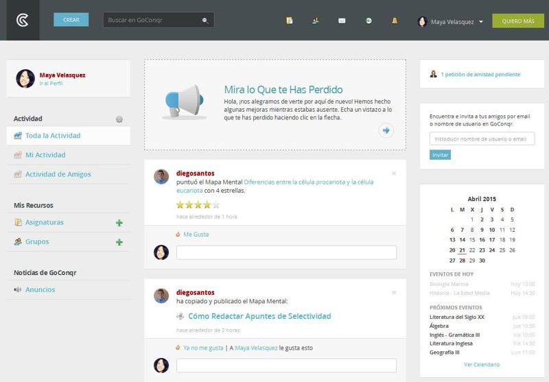 Este enfoque está resultando muy popular, con más de 30.000 personas uniéndose a GoConqr cada semana. En este sentido, aunque la plataforma nació en Irlanda y sus primeros usuarios provenían principalmente de países de habla inglesa, cada vez más profesores y alumnos de todos los rincones de España se van sumando a la plataforma, que cuenta con una versión en español desde el año 2013.