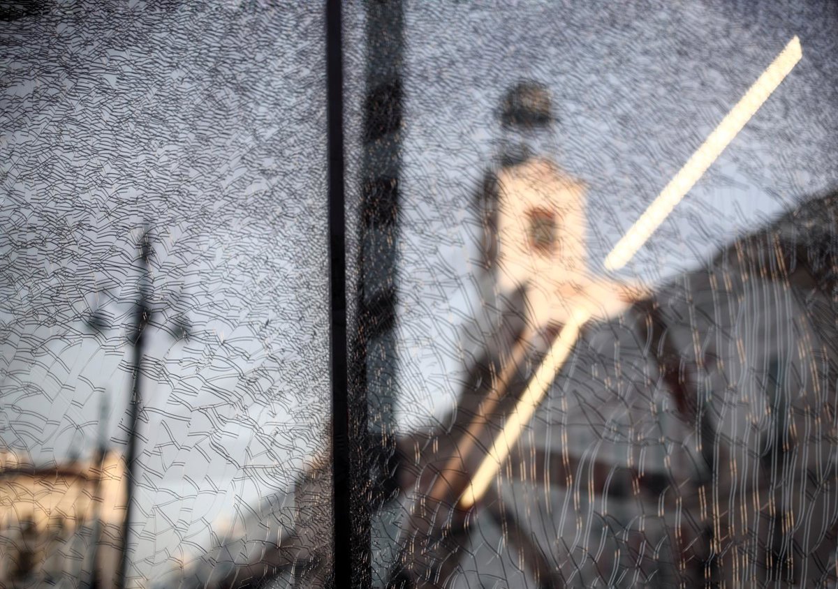 Cristalera rota de la boca de metro de la Puerta del Sol tras una noche de protestas. - Eduardo Parra - Europa Press